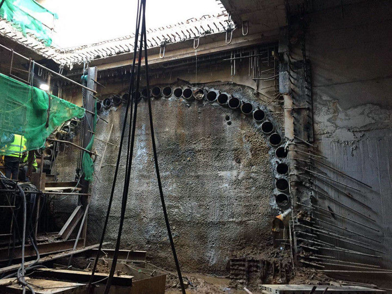 管幕在土體開挖之前建成地下建筑頂板及側(cè)墻,在土體開挖階段起支護(hù)、擋水作用,之后又是主體結(jié)構(gòu)的一部分,無(wú)需施工基坑圍護(hù)結(jié)構(gòu),無(wú)需降水,節(jié)省了大量建設(shè)資金和工期。